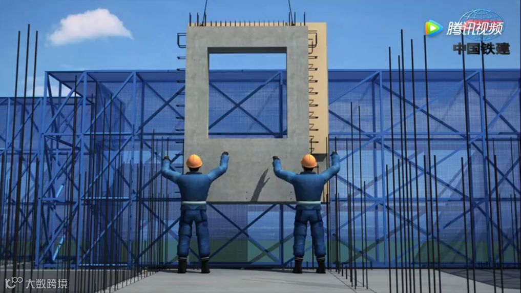 2. PC组件在工厂预制,组件运输到施工现场,然后由大型起重设备吊起。操作人员只需要在支撑板上工作并临时固定工件,这大大降低了操作人员的劳动强度。