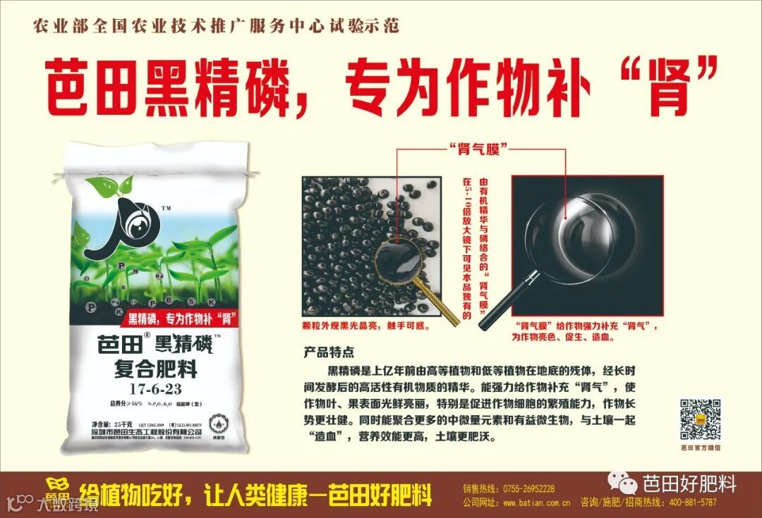 黑精磷复肥是芭田2021年重磅推出的新系列产品。它选用贵州优质磷矿为原料,表层有一层 “肾气膜”,这个“肾气膜”是上亿年前由高等作物和低等作物的残体,经地壳变化埋于土层深处并长时间发酵后而成的活化有机物质的精华,能够给作物补充“肾气”,使作物的叶、果表面光鲜亮丽。此外,黑精磷复肥还可以聚合更多的中微量元素和有益微生物,与土壤一起“造血”,实现营养和改土双效果。