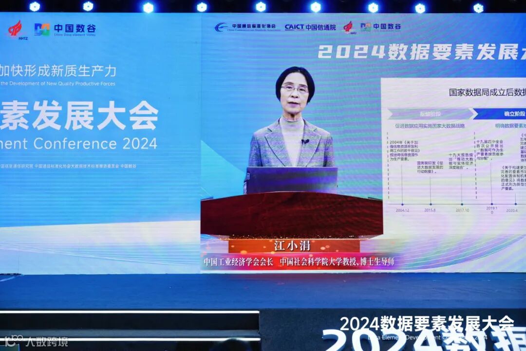 中国工业经济学会会长、中国社会科学院大学教授江小涓就“推进数据市场建设中的几个重点问题”作主题演讲。