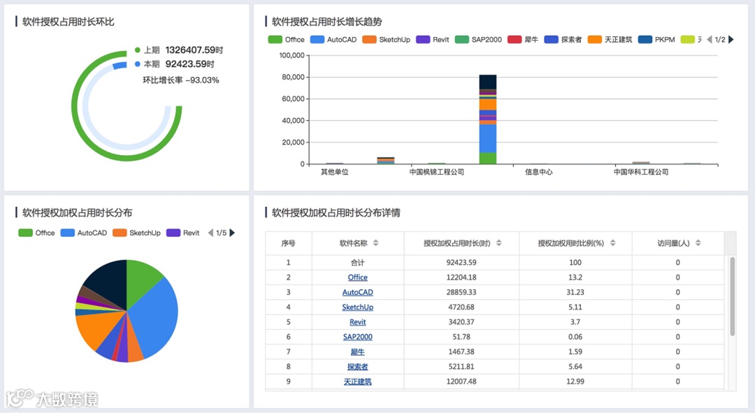 使用场景:在了解各部门的“用时高峰”与“授权紧张”时段后,信息化部门可合理安排项目里程碑或技能培训,错峰使用,提高整体系统效率。