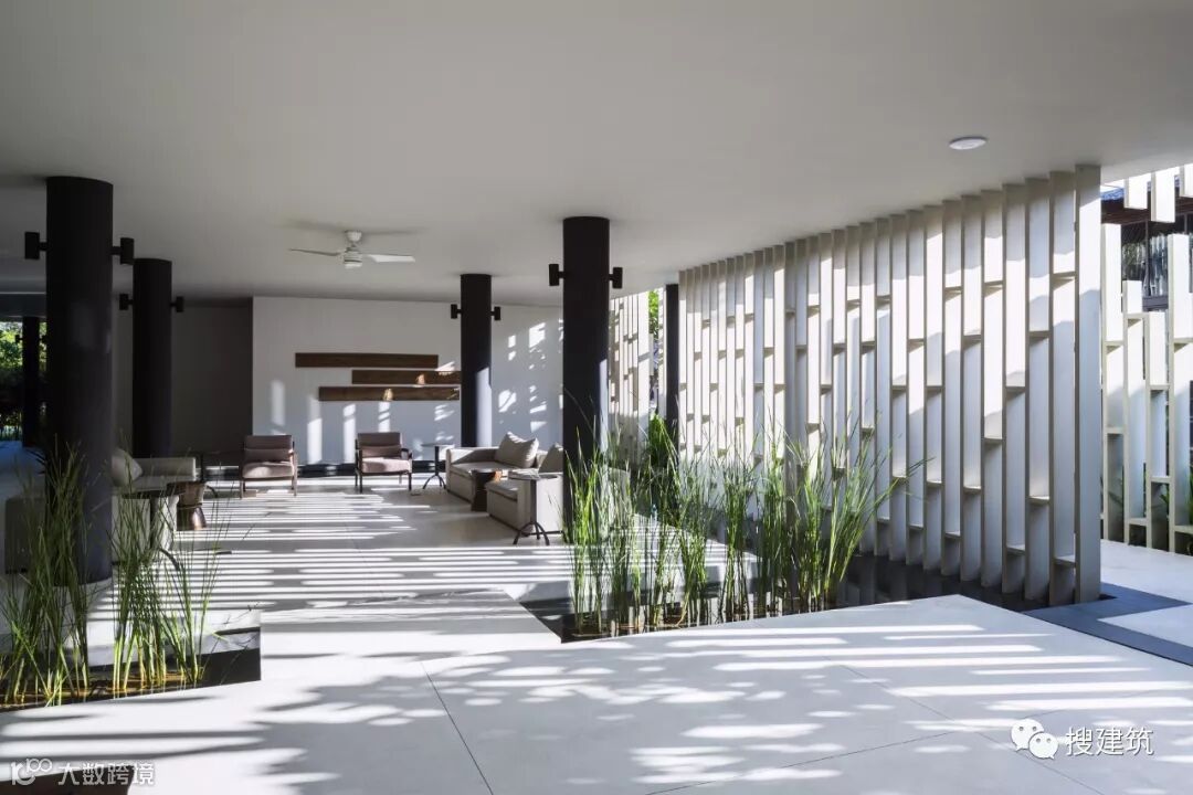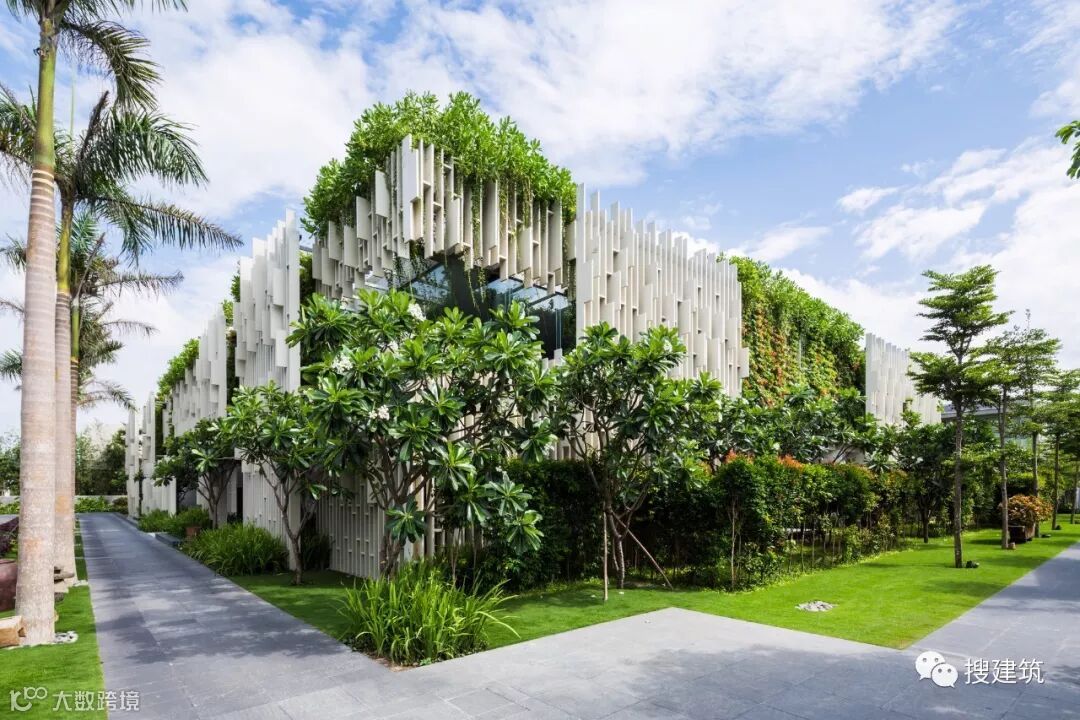 不同区域的相互渗透和美丽的景观让在此体验的人们感受到了一种梦幻般的旅程。建筑正面是由晶格模式组成的交替式垂直景观,这种装饰可以将强热带阳光经筛选后转化为一些柔和的光线并在墙壁上产生出一些带有纹理的阴影。各种植物经过仔细分配后,成为了建筑的一部分幕墙。