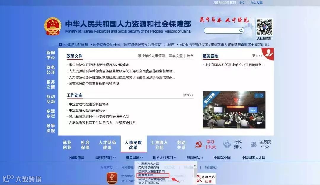 1.登录国家人社部官网,点击教育培训网。