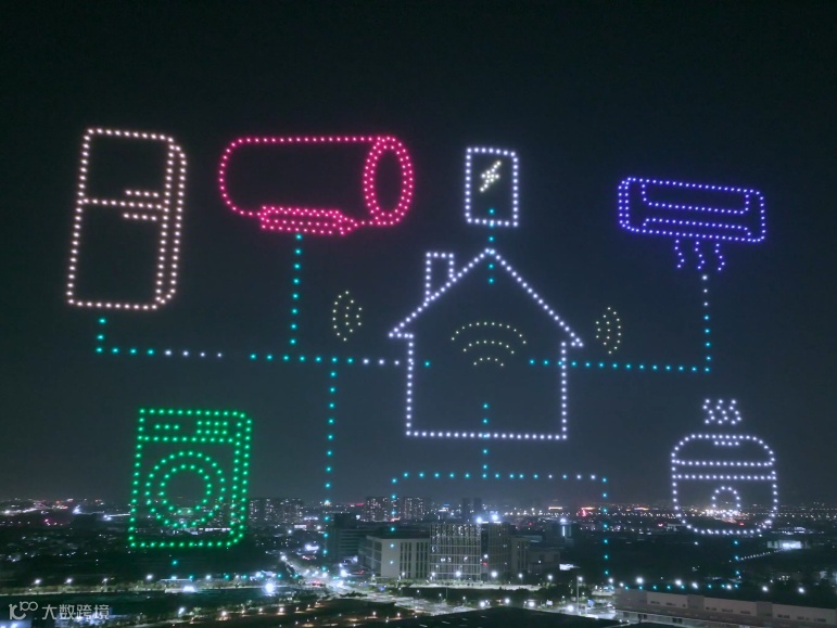 随着按键摁下,1000架无人机组成方阵腾空而起。