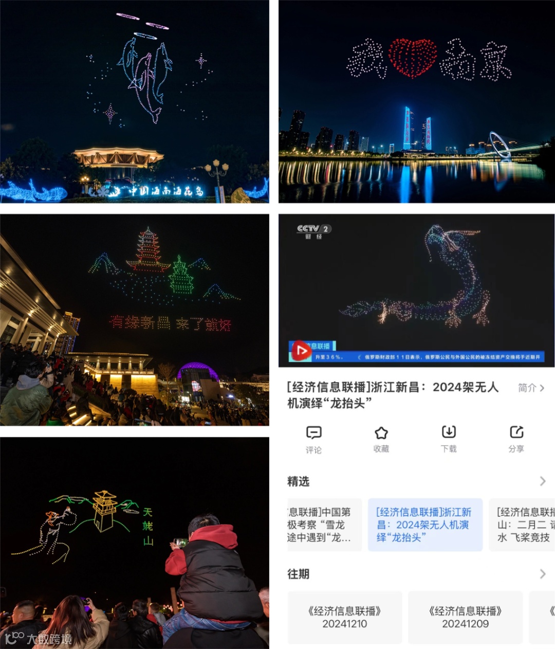 自2023年12月无人机灯光秀表演业务开展以来,我公司已在浙、苏、沪、粤、晋、冀等地顺利完成80余场无人机灯光秀现场表演,累计引流约160万人次。