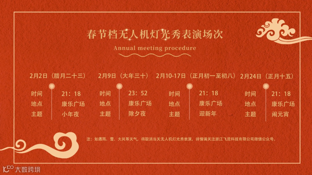 本次春节档的无人机灯光秀表演,由浙江飞流科技有限公司提供技术服务