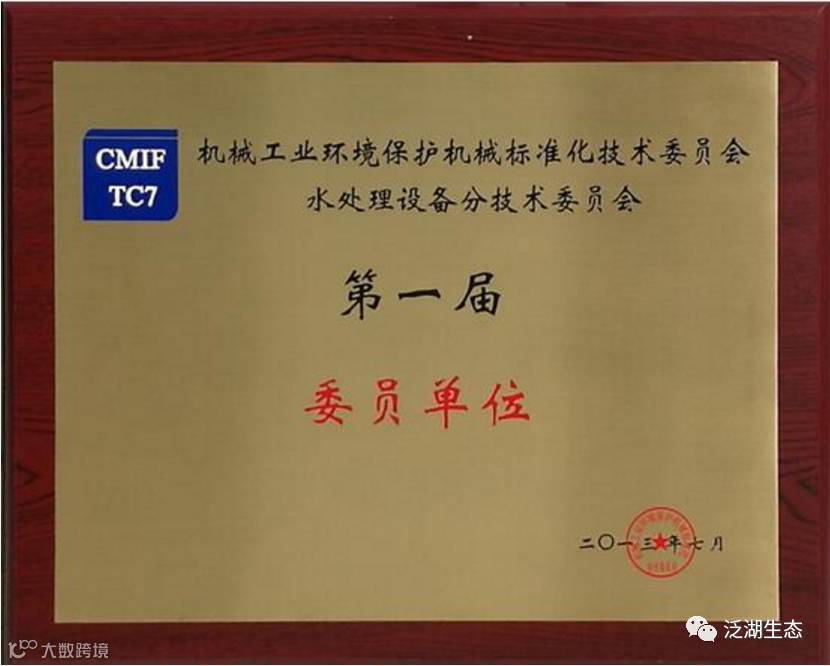 近日,环境保护机械标准化技术委员会(CMIF/TC7)2017年度工作会议在浙江杭州召开,我司总经理王淦博士作为水处理设备分技术委员会新增委员出席会议并参加标准评审工作。会上,安徽泛湖生态科技股份有限公司被授予“委员单位”标牌。同时,公司参编的2项行业标准在会议上获得初审通过。