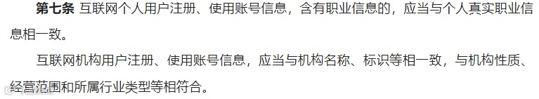 《规定》还明确了互联网用户在注册及使用账号信息时不得出现的8种情形: