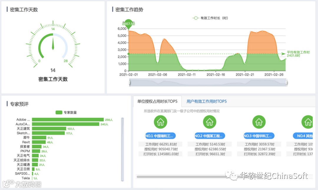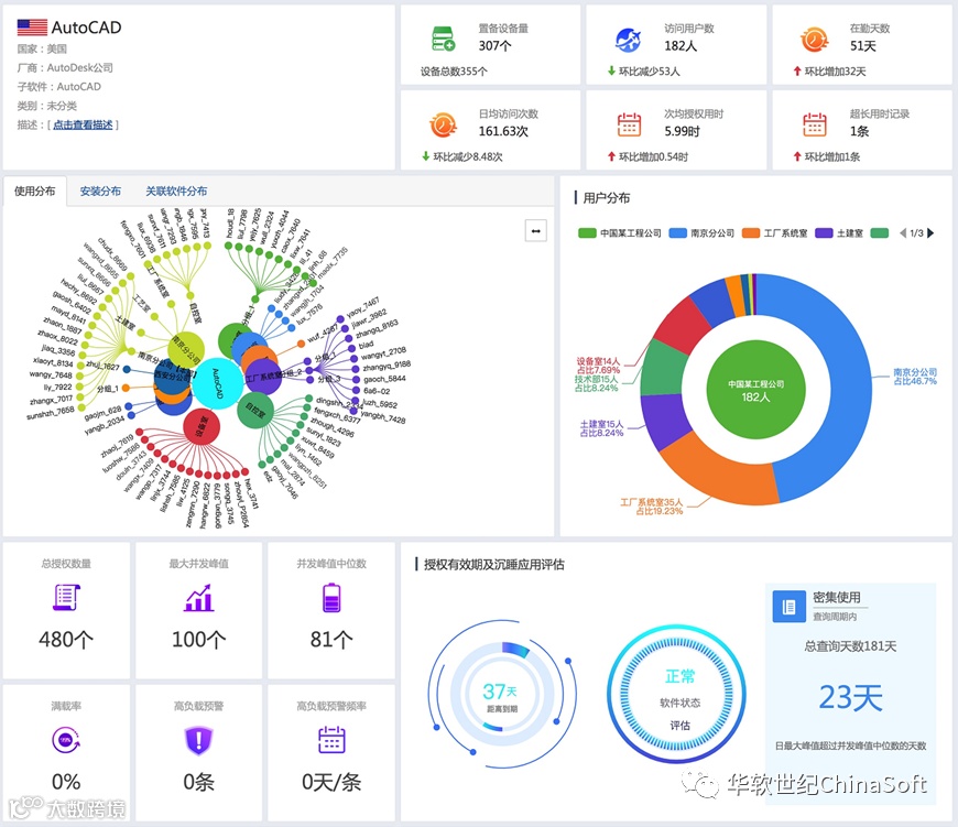 提供了从有效工作层面的对软件利用率进行整体洞察,包括员工真实工作中对各类软件的依赖度综合分析。