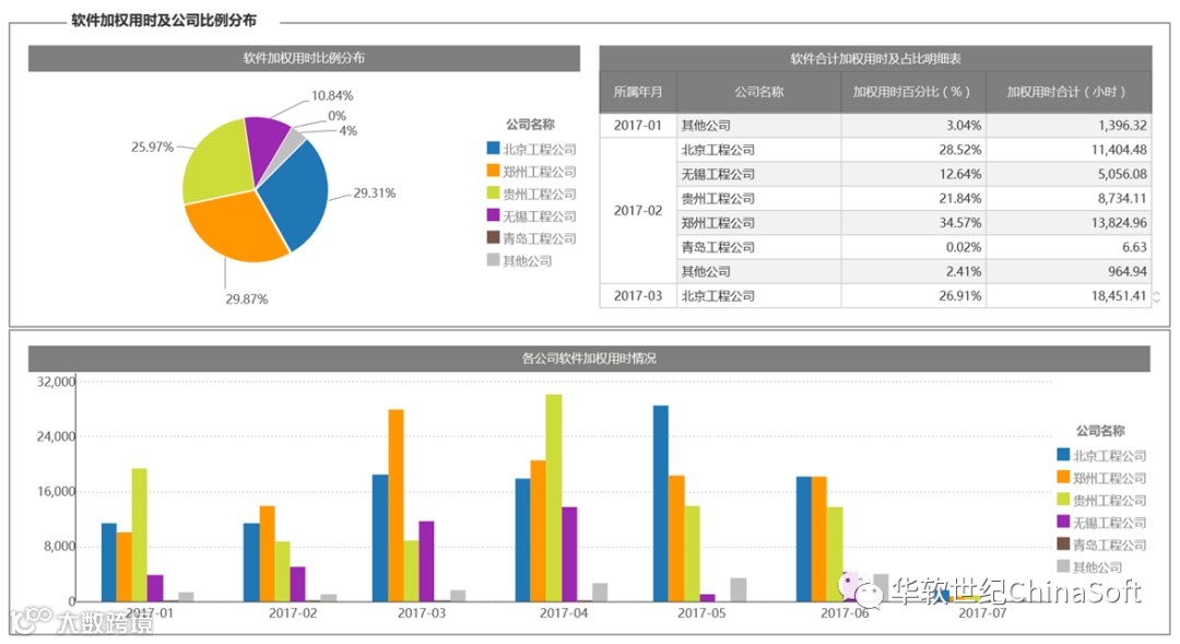 各个层级软件耗时的分布情况分析(由上至下依次为公司、部门、企业层级)