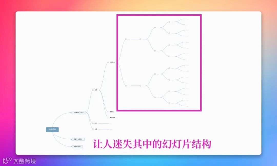 我们在记忆大量内容的时候都知道成体系又关联的内容是最容易记住,最不容易忘掉的。所以我们进行幻灯片演讲,也需要让听众先看到内容的逻辑关系,幻灯片的最大特点就是用听众的眼睛所看到的来强化他们头脑所接收的。