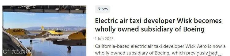 5月31日,eVTOL开发商Wisk Aero的首席执行官Brian Yutko证实,波音公司已经买下了谷歌创始人拉里·佩奇支持的Kitty Hawk公司在Wisk Aero持有的剩余股份,Wisk Aero现已成为波音公司(BA.N)的全资子公司。据Wisk Aero官网显示,2010年,Wisk团队开始探索电动垂直起降飞行的可能性。2023年,Wisk被波音全资收购,但仍将保持独立运作。Wisk总部位于美国加利福尼亚州,并在世界各地设有分支机构。Brian Yutko在今年2月起担任Wisk Aero首席执行官,在此之前Yutko为波音公司可持续发展与未来交通副总裁兼该领域的总工程师。