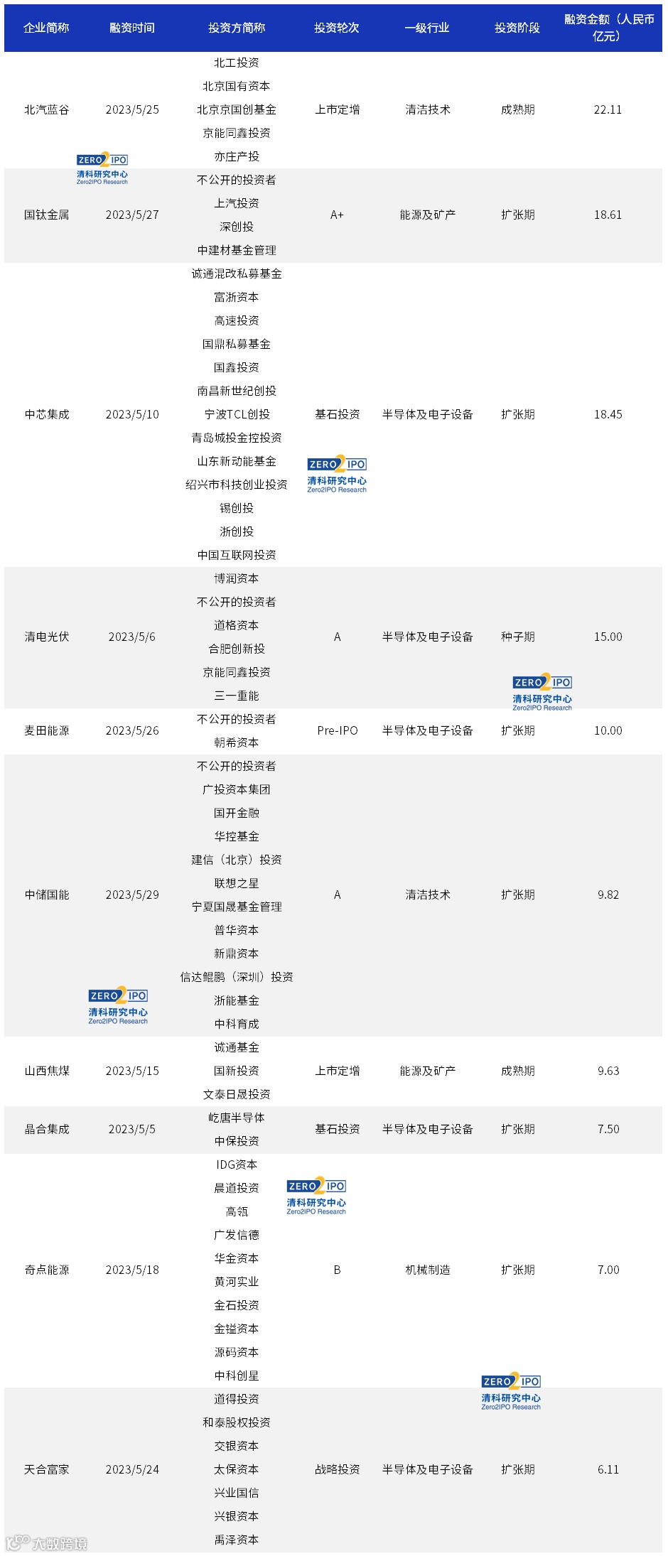 5月融资排名前十的上市企业融资额合计为332.76亿人民币,占总融资额约68.9%。其中,融资金额排名前三的企业为:晶合集成(99.60亿人民币)、中芯集成(96.27亿人民币)、曼恩斯特(23.04亿人民币)。