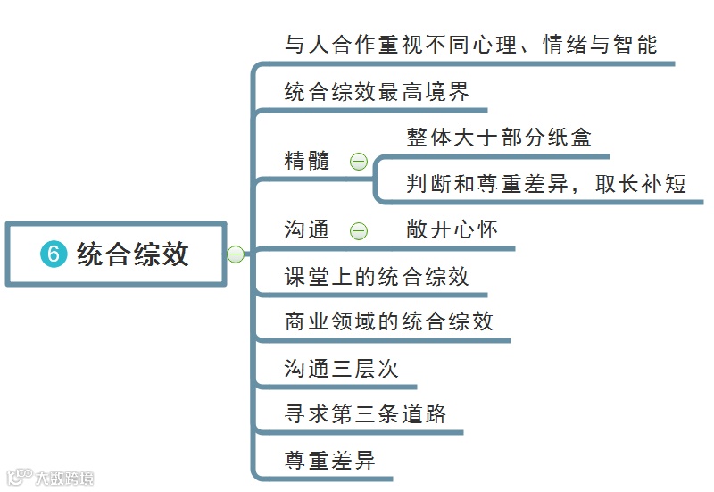 统合综效谈的是创造第三种选择——即非按照我的方式,亦非遵循你的方式,而是第三种远胜过个人之见的办法。它是互相尊重的成果——不但是了解彼此,甚至是称许彼此的差异,欣赏对方解决问题及掌握机会手法。