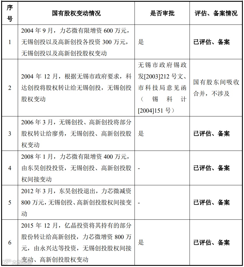 2017年4月17日,江苏省人民政府办公厅出具了《省政府办公厅关于确认无锡力芯微电子股份有限公司历史沿革及股权界定事项合规性的函》(苏政办函[2017]31号),确认“无锡力芯微电子股份有限公司历史沿革及股权界定事项履行了相关程序,并经主管部门批准,符合国家法律法规和政策规定”。