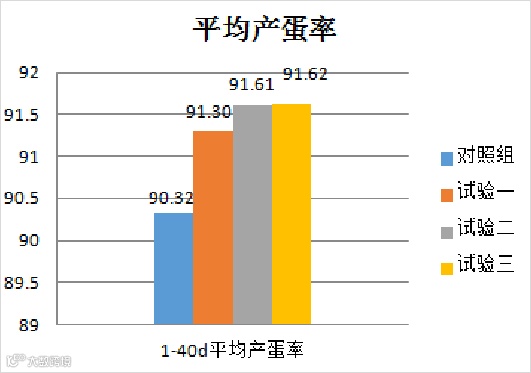其中,日粮中添加1.5%倍肽德®,1.5%和1.0%蔺福®在40天试验期内平均产蛋率比对照组产蛋率分别高出了0.98%、1.29%、1.30%。