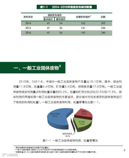 环保部发布《2016年全国大、中城市固体废物污染环境防治年报年报》,汇总分析了全国246个大中城市发布的固体废物污染防治信息,系统总结了固体废物污染环境防治工作情况,并选择部分具有代表性的省份介绍他们的工作经验。