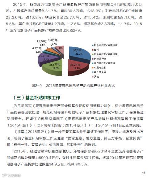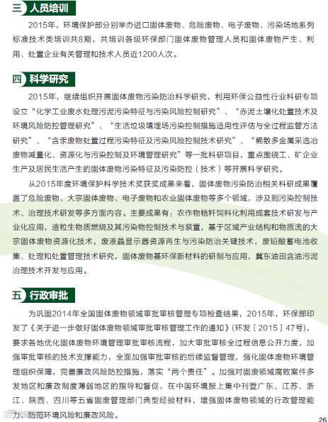 《年报》还介绍了我国现行固体废物污染防治主要政策法规、固体废物管理机构能力建设情况、固体废物管理技术培训情况以及固体废物污染防治相关科研成果。并选择4个代表性省份,介绍了他们在解决固体废物管理重点、难点问题方面的经验和做法。