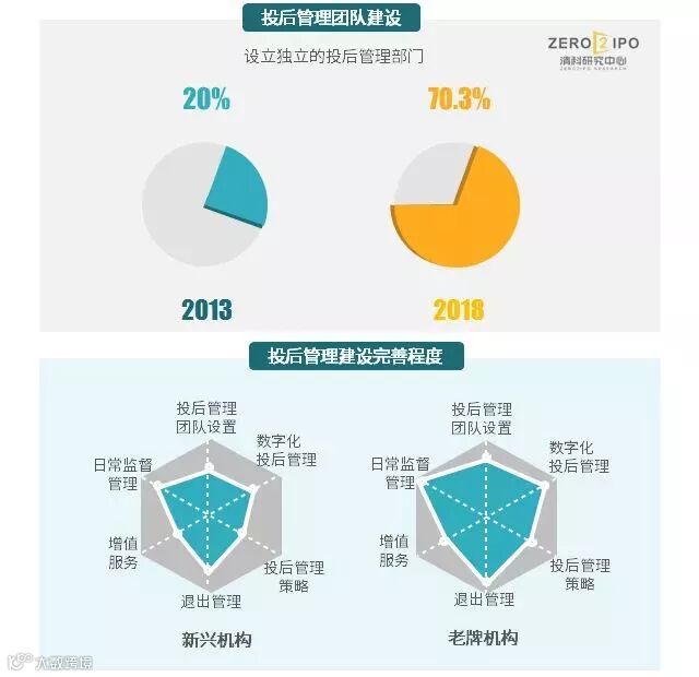 越来越多的机构意识到投后管理的重要性:根据清科研究中心不完全统计,2013年的调研机构中,仅有16.1%的机构设置了专门的投后管理团队,而2018年该数据已达70.3%,越来越多的机构意识到投后管理的重要性。