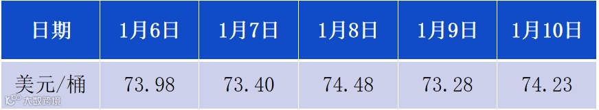 1月3日-1月9日布伦特原油价格走势