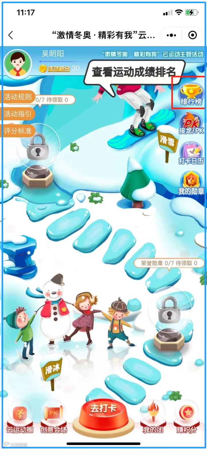 2、同个运动项目可打卡多次,系统默认取当天最新成绩统计排行。