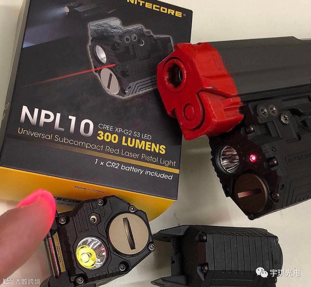 奈特科尔NPL10红点激光下挂灯,采用尼龙材质的外壳,机身超轻仅有54克,迷你体积结构更便捷,尼龙对防腐蚀,防锈效果是非常不错的,NPL10采用一颗CREE XP-G2 S3 LED,使用寿命可以达到50000个小时,采用一节可更换的CR2锂电池,以实现户外长时间的续航,更有高抗震可调节的红色激光定靶器及皮卡汀尼皮轨快速拆装。