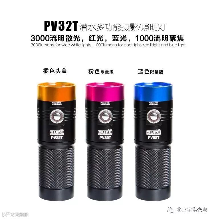 ③ PV32T潜水摄影补光灯3000流明配有红光蓝光聚焦灯(1498元)