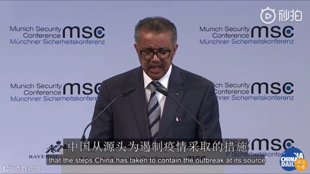 世界卫生组织总干事谭德赛15日在第56届慕尼黑安全会议上表示,我们无法预测新冠肺炎疫情向什么方向发展,但让我们受到鼓舞的是中国从源头为遏制疫情采取的措施为世界争取了时间,这些措施让中国损失巨大,但延缓了疫情向世界其他地区蔓延。