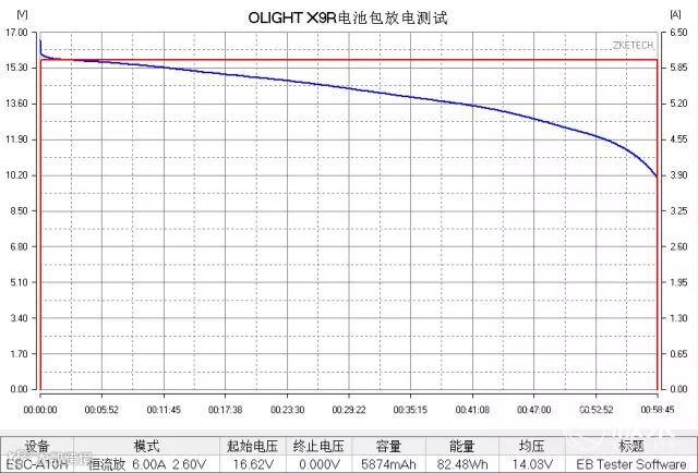 既然拆了,用放电仪做了容量测试,6A恒流模式实测最大容量达到82.48WH,和标称的86.4WH的容量很接近,厂家一般标称容量是把电池电量完全放光,所以实测容量达到标称95.5%已经是很不错的成绩了。电池电压放到10V的时候突然截止,应该是保护板欠压保护动作了,实际上也只有平衡保护板敢把保护电压设置的这么低,几乎完全榨干电池的容量了。