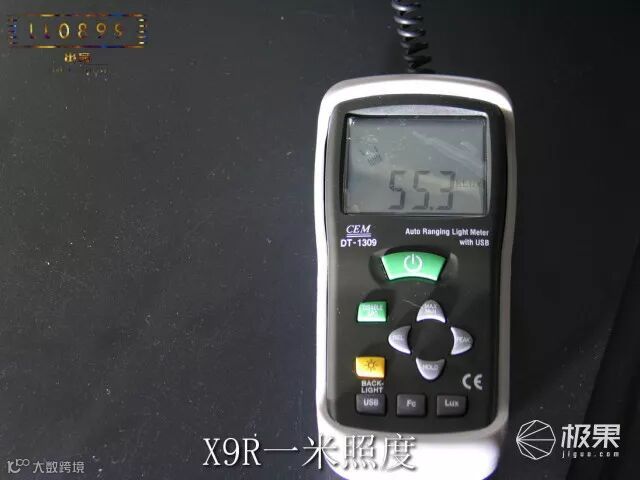 最后上个一米照度对比,可见虽然DX80光通量比X9R要高,但是中心照度还是X9R更强,得益于更深的灯杯和更大的单灯杯直径。