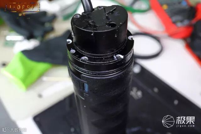 拆解继续,引线这部分设计的很复杂,不是引线的数量,而是密封结构。X9R并没有采用普通的胶封的方法来密封,而是采用了复杂的O环+压环的结构,达到了非常好的密封效果。
