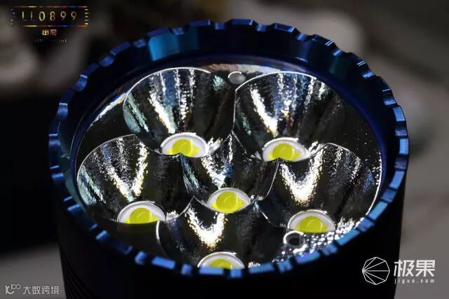 然后当然就是LED了,6颗XHP70II2可以提供高达25000流明的最大光通量,同时最大功率也攀升达到200W。微橘皮的铝合金灯杯镀膜工艺做的很好,亮度非常高。