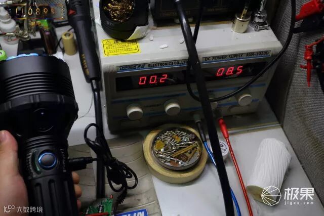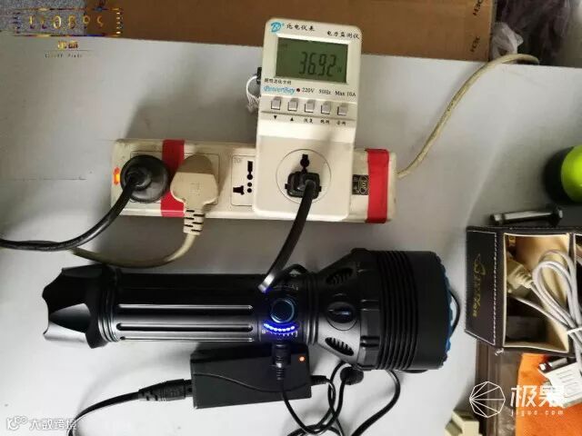 另外比较有意思的是,其实x9r的充电口即使不用原带的12v转16.8v的转换器也是可以点亮电筒的,亮度档位只能使用到第五档位,大概30w亮,度还是不低的,但是如此低压x9r是不能对电池充电,只能说在极端情况下做应急照明。实际上即使输入电压降低到8.5v,led也能点亮,只不过功率就只剩下2瓦了。