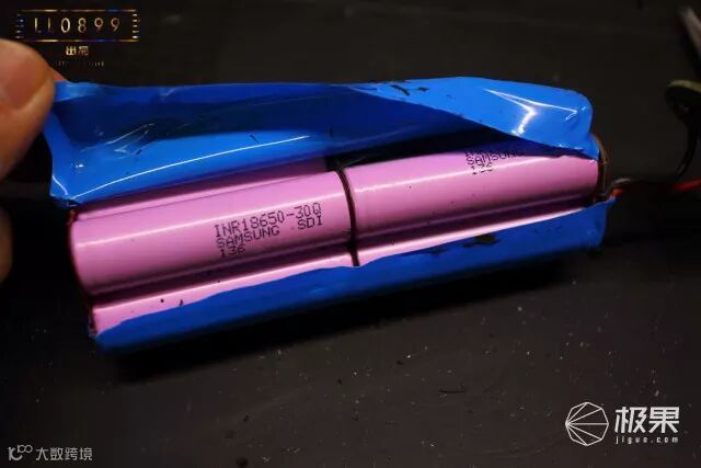 既然拆就得拆彻底,剥开电池的热缩膜,可以清晰看到电池芯为三星的30Q,算是玩桶圈里比较有名的电池芯,标称容量为3.7V 3000MAH,最大放电电流15A,其实20A问题也不大。
