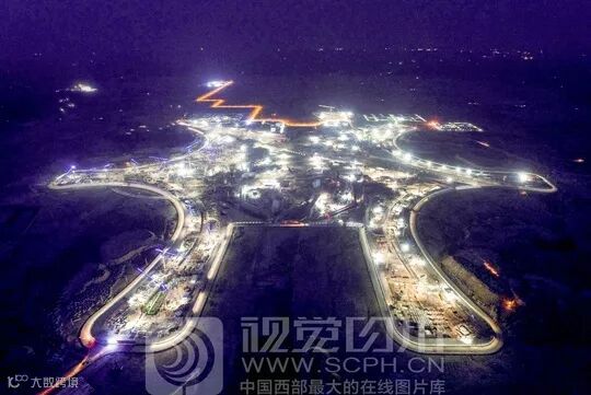 2018年5月,建设中的天府国际机场,入夜后依然灯火通明▼