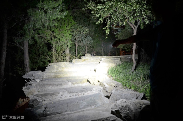 那么就来看看开阔区域的效果,大口径透镜的优势就是能将眼前大面积范围都照射得很清晰,指挥家PRO是一个优秀的泛光手电。