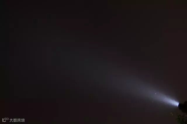 从出筒光线看,泛光筒也能看出明显的光柱,主光斑出筒亮度较高,十几厘米后迅速散开变淡,开射角度约为20°左右,泛光区域很大,适合近距离、大范围使用。
