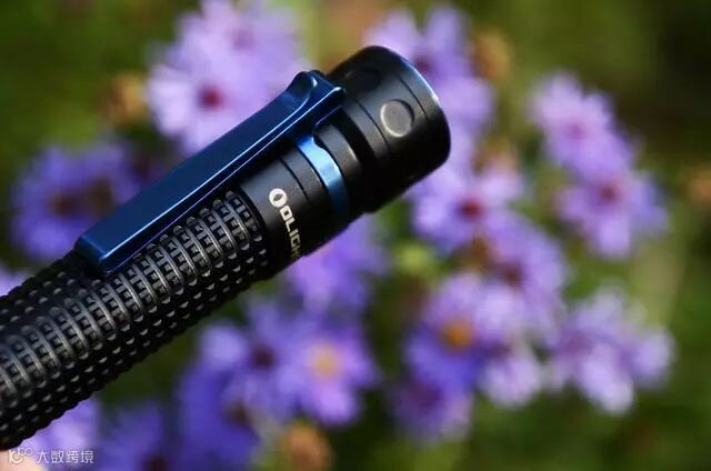 只说数据没有概念,那就有个比较来看:指挥家PRO比成年人的食指略粗、略长一些,跟一个大点的狗尾巴草差不多大小。筒身采用强度和导热性能都比较好的铝合金材质,经典的黑色军规三级硬质氧化表面,防刮耐磨,搭配灯头、开关、抱夹三处蓝色点缀,美观耐看。