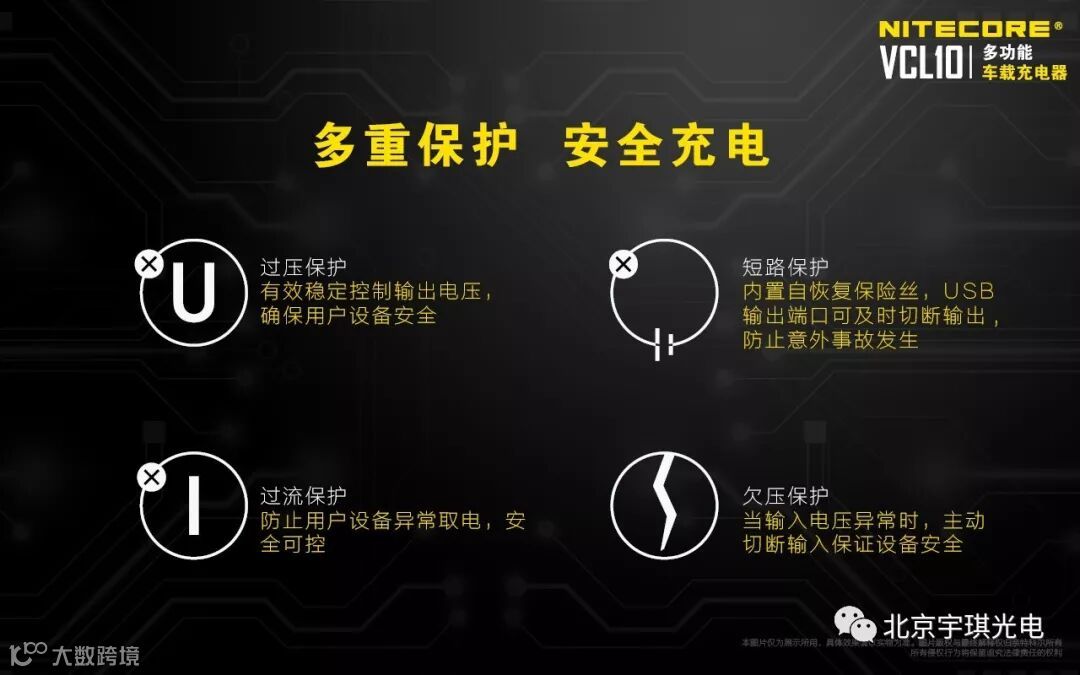 VCL10支持QC2.0、QC3.0 USB快充,输出电流高达2.4A,同时有着过压、过流、欠压、短路等多重保护,确保用户安全充电。另外,USB 接口根据不同设备所需功率智能调节输出能力,兼容主流手机、平板电脑等设备。不仅如此,VCL10还具备线损补偿功能,确保充电器高效稳定地工作。