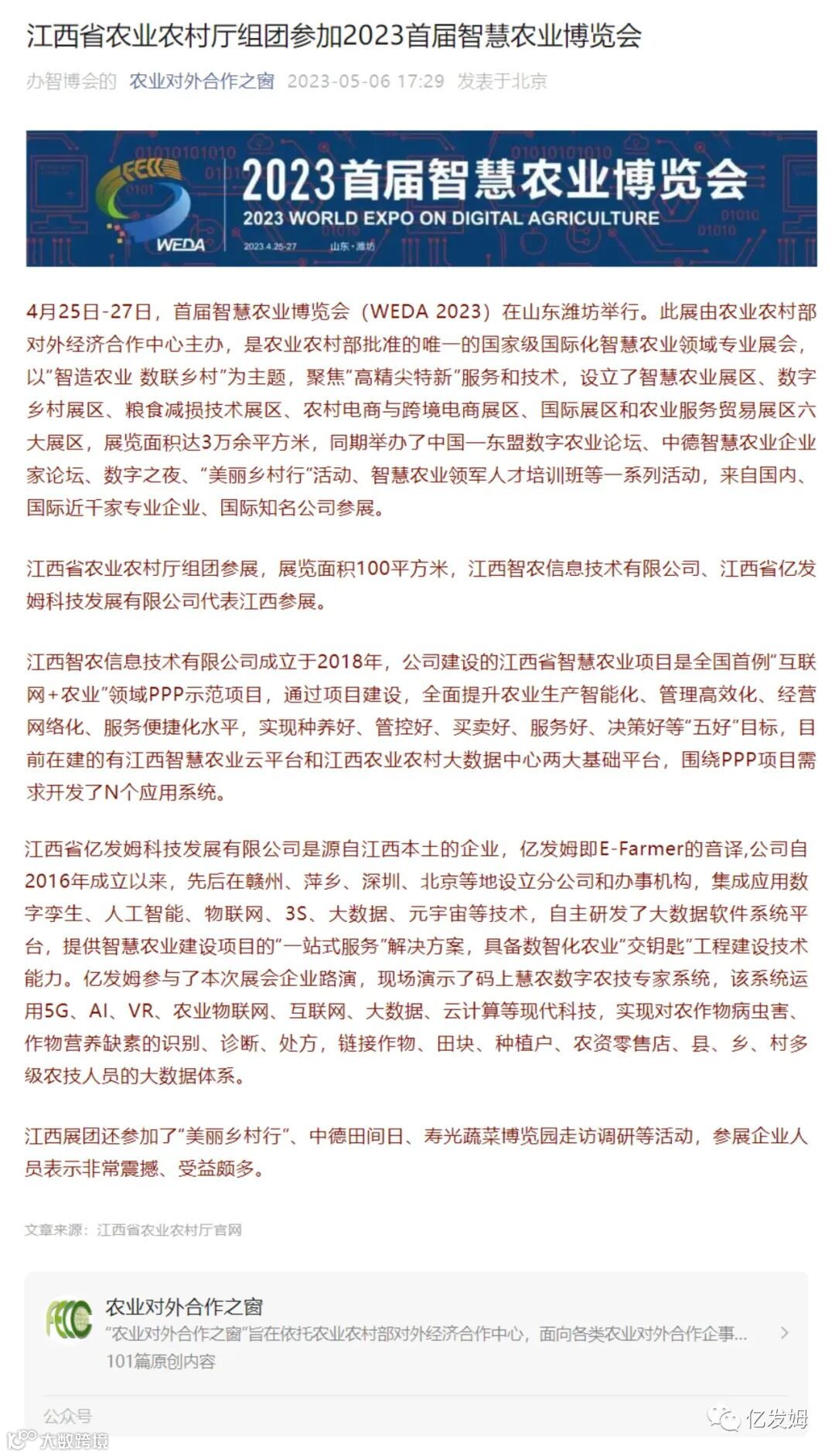 农业农村部官媒报道!亿发姆科技参展受到瞩目!