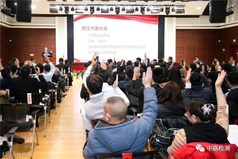 2020年1月11日,中路检测公司第一届职工代表大会在十三层报告厅召开。全体职工代表和特邀代表150余人参加会议。会议由主席团执行主席宿健同志主持。