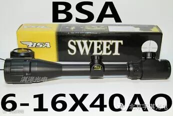 瞄:由于价格进步不下探,我们选择了一款带AO的入门级产品,BSA 4-16X40AO 带AO 带红绿光 金属丝分化 分体管。虽然已经是入门产品,但是还是保留了AO 视差调节。。这点 是比较重要的,没有视差调节 ,一切都是浮云了。。。。