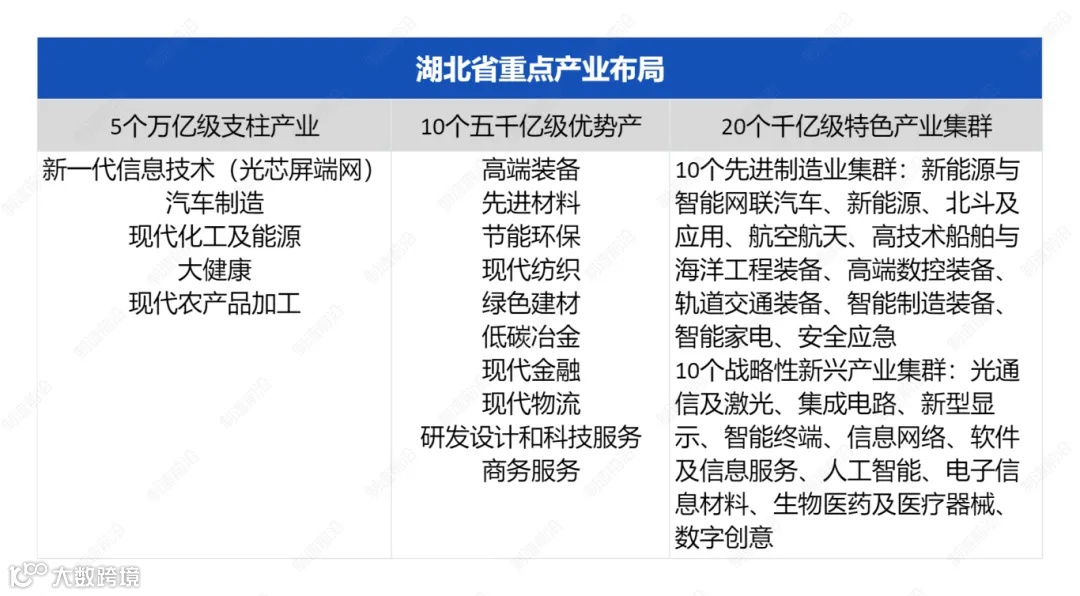 湖北作为制造业大省,提出构建“51020”现代产业体系。即,5个万亿级支柱产业、10个五千亿级优势产业、20个千亿级特色产业集群。