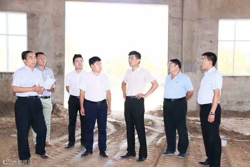 图为:常务副总刘成(左四)、生产管理中心总监兼光伏运营中心总监孟祥辉(右一)陪同县委书记王卫东(右三)、县人大党组书记、副县长王占华(左一)、县委办公室主任周在宇(右二)检查6号车间