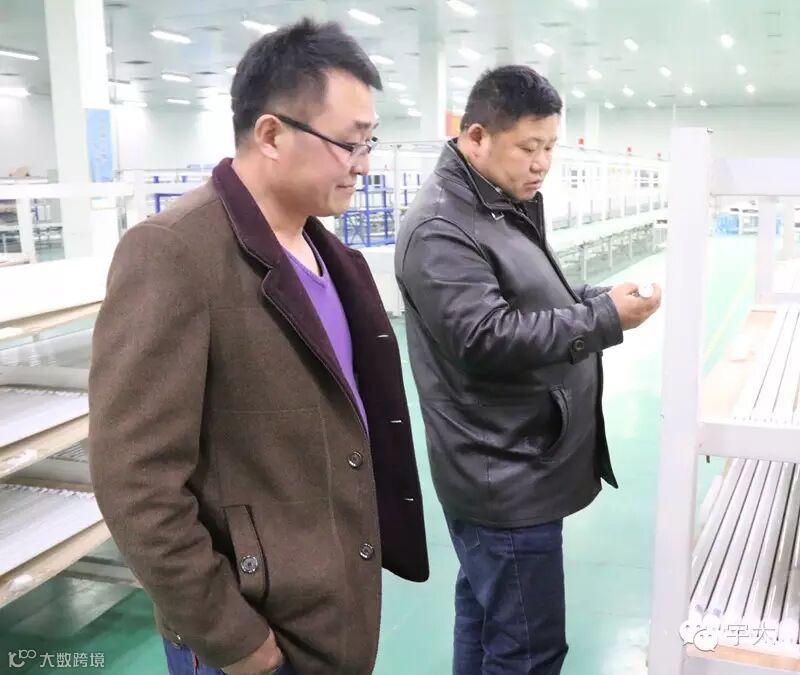 图为:杭州聚富光电科思栢丽品牌张总一行参观考察LED灯具工厂生产设备
