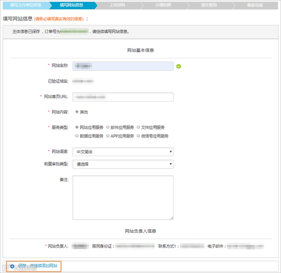 确认备案信息中主体信息、网站信息是否正确,信息确认无误之后即可提交备案,备案订单将进入初审阶段。