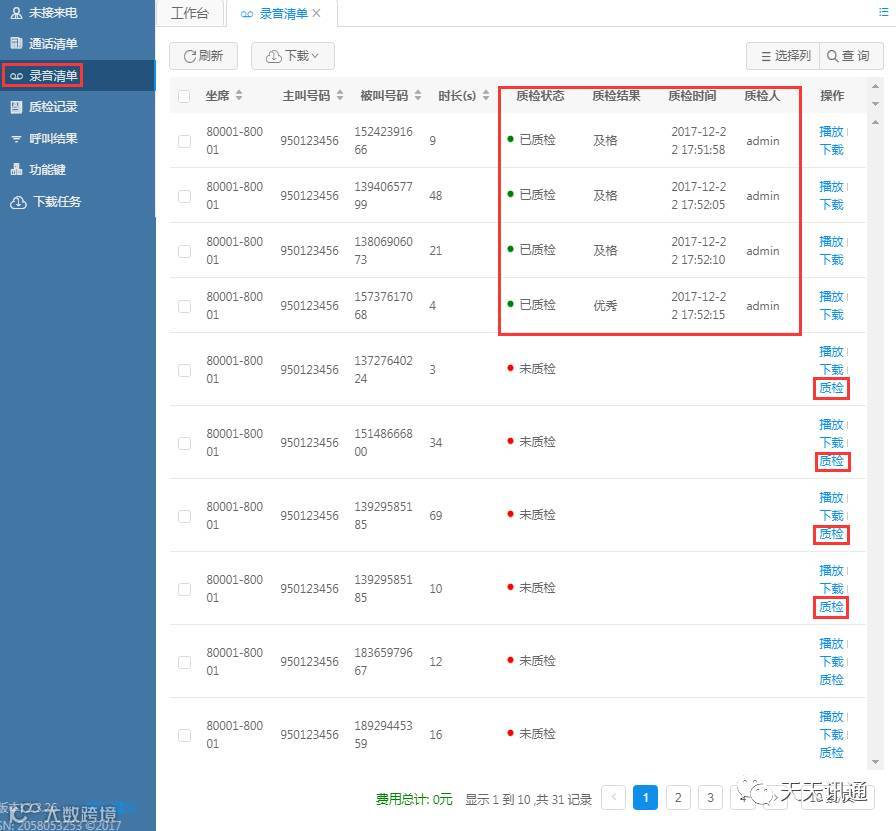 质检员可以根据录音内容对坐席进行打分,以及质检统计。