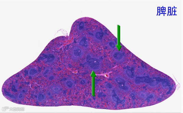 应激可导致淋巴组织内淋巴细胞溶解或解体,如下图所示。