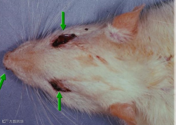 大鼠眼睛和鼻-红色眼泪和鼻分泌物