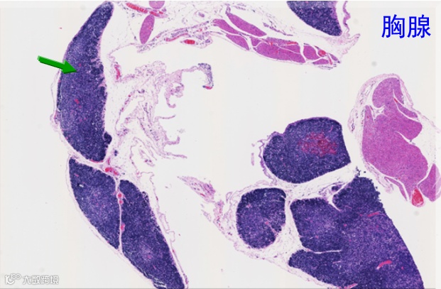 大鼠胸腺 皮质-髓质层交界处急性出血