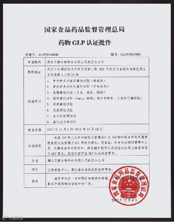 总部地址:武汉东湖新技术开发区高新大道666号C7栋3楼湖北天勤生物科技有限公司